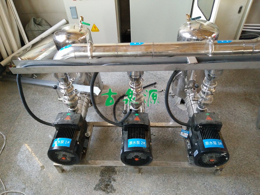 该项目地址位于辽宁省盖州市,出水量为30T/h,设计方案我们给提供了两套15T/h的净水系统组合而成,用水量大的时候可以两套系统同时启动,产水能力可以达到30T/h,用水量小的时候,可以单独启动任意一套单独的净水系统,产水能力即可变为15T/h,灵活方便。 该项目的原水为地下水,该地区地下水水质相对较好,我们预处理采用了石英砂+活性炭+RO的系统组合,配置阻垢剂加药系统以延长RO膜的使用寿命。 项目于2015年年底施工完成,产水水质达标,使用至今无明显的水质变化。