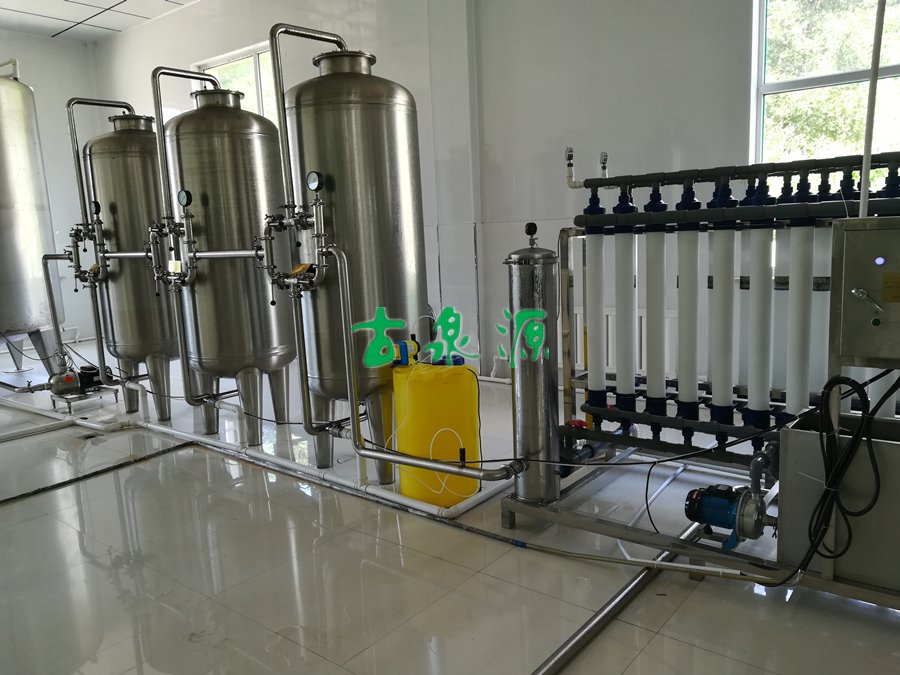 该项目地址位于辽宁省昌图县,地区地下水水质相对较好,故此采用超滤工艺对原水进行净化。将原水水中的有益离子成分进行保留,除去水中99.99%的可溶性固体、细菌、胶体等一系列对人体有害的物质,最末端采用臭氧进行消毒,保证全部无菌化出厂。