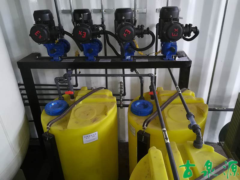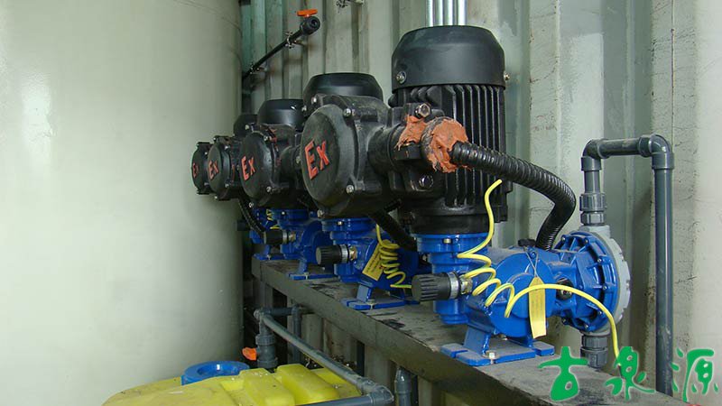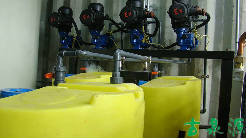 加药系统(dosing system)主要由溶液箱、搅拌箱(带搅拌器)、计量泵、液位计、电控柜、管路、阀门、安全阀、止回阀、压力表、过滤器、底座、扶梯等组成(可根据用户实际要求配置)。加药系统根据所需药剂浓度,在搅拌箱内配制,经搅拌器搅拌均匀后投入溶液箱、用计量泵(加药泵)向投药点或指定的系统中输送所配制的溶液。