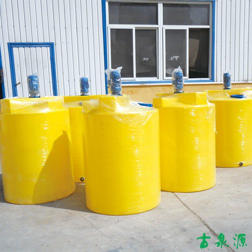 加药箱在水处理工程中主要用于各种药剂的搅拌、溶解、储存,再通过计量泵或水射器将药液投加到各投加点。外形分为方形和圆形,材质为聚乙烯(PE),通过滚塑技术一次成型,上部预设了计量泵及搅拌机的安装位置,搅拌机、加药桶、计量泵三合一,使用非常方便